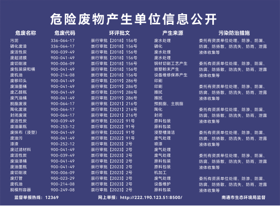 危險廢物污染環境防治信息公示